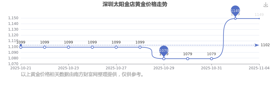 深圳太阳金店的黄金价格在今日(2025年11月4日),每克售价为1149.0元/克。