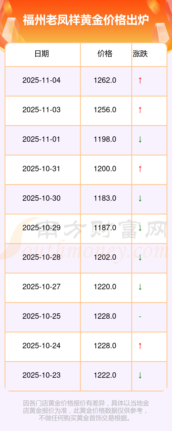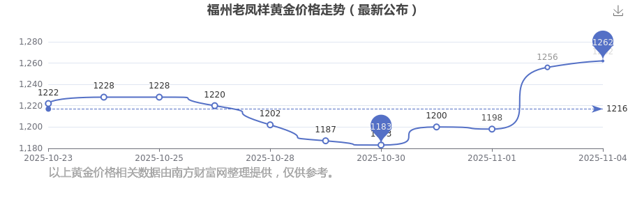 今日福州老凤祥黄金价格最新为:1262.0元/克。