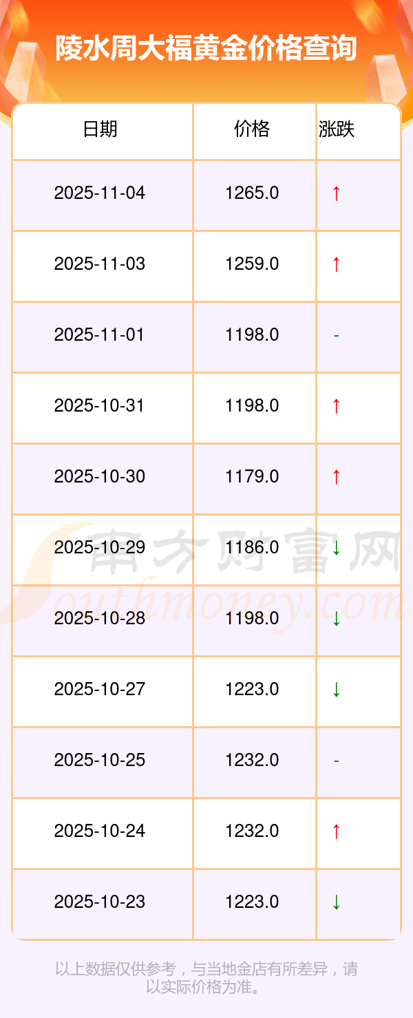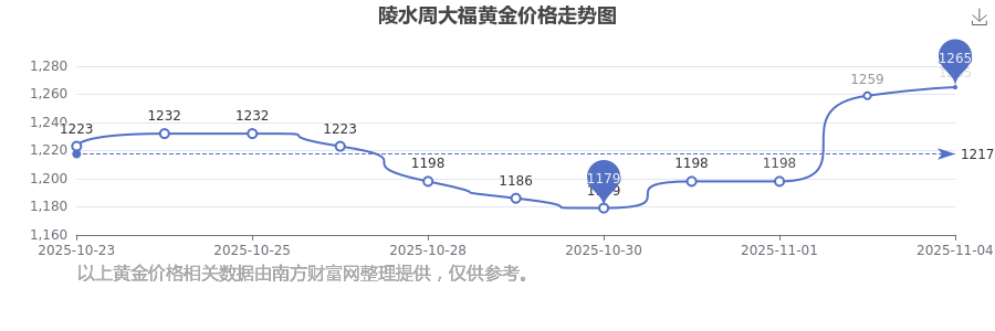 陵水周大福现在黄金价格多少钱1克,此刻黄金一克的价格是多少?今日陵水周大福黄金价格查询,陵水周大福 2025年11月4日的黄金价格价位为 1265.0元/克。