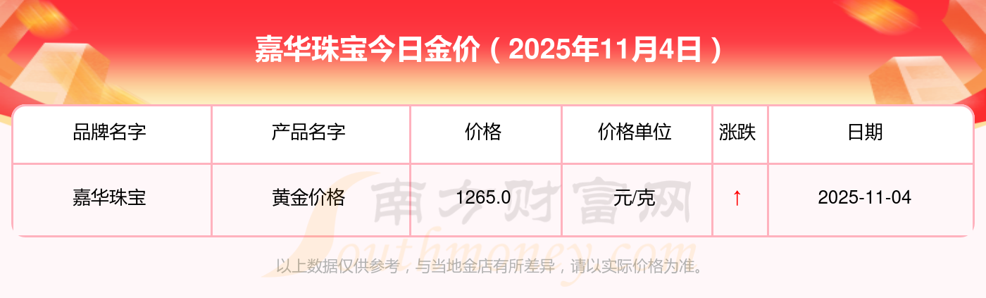 现在嘉华珠宝黄金价格是多少钱1克_2025年嘉华珠宝今日金价是多少钱一克,最新嘉华珠宝查询,2025年11月4日嘉华珠宝黄金价格现在每克多少钱?最新嘉华珠宝黄金价格报价公布,一起来看看吧!