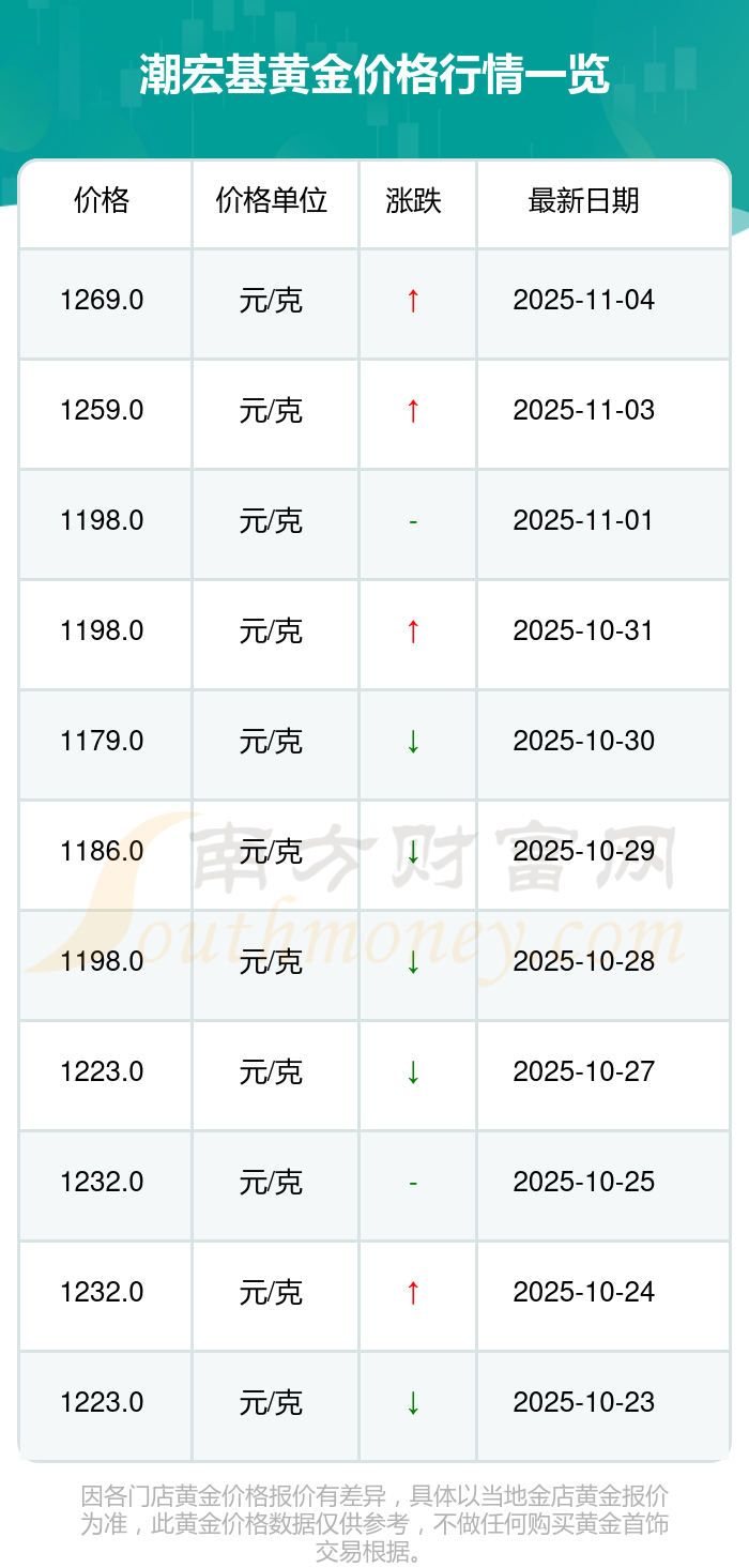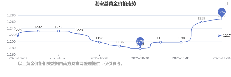 今日潮宏基黄金价格的价格是1269.0元/克。