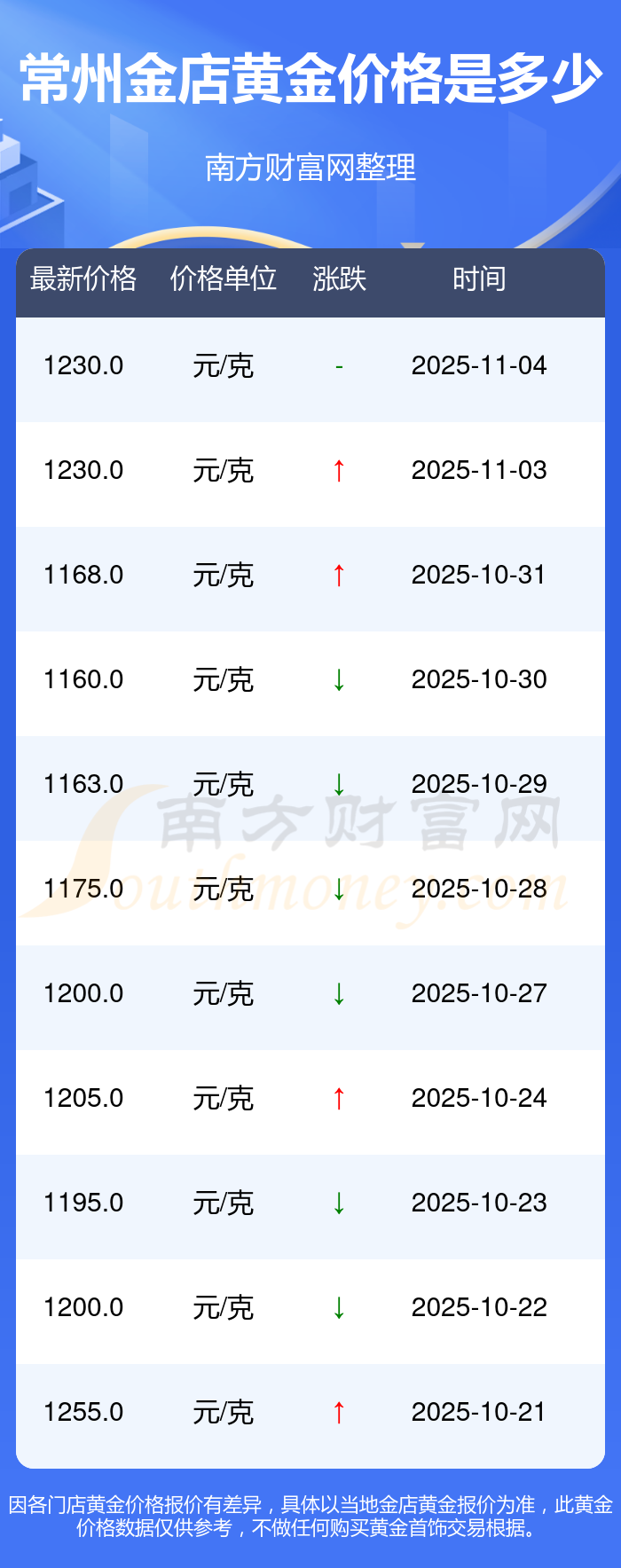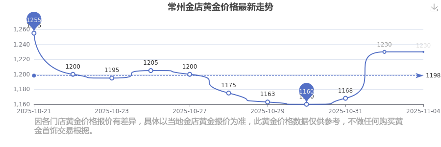 常州金店 黄金价格在今日的最新价格显示为1230.0元/克。