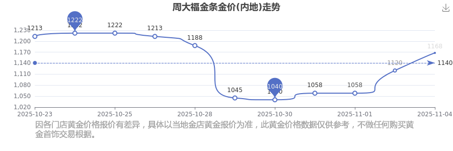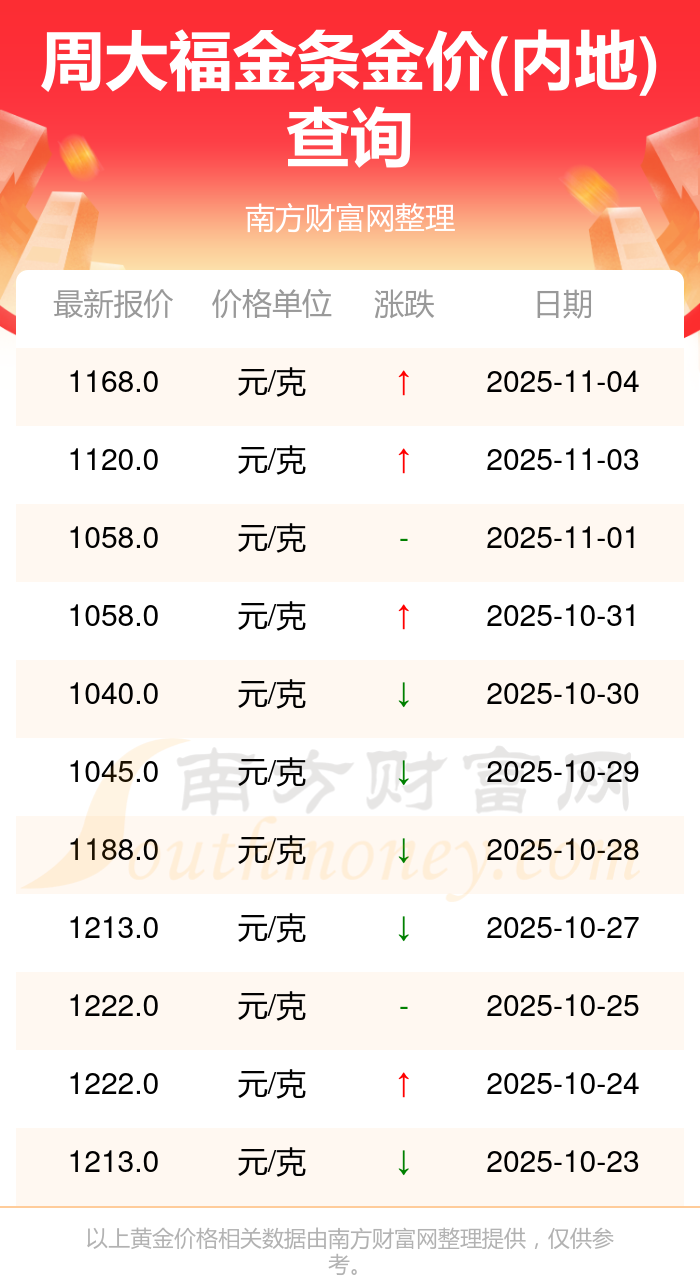 1168.0元/克的价格,是周大福今日 金条金价(内地)的最新行情。