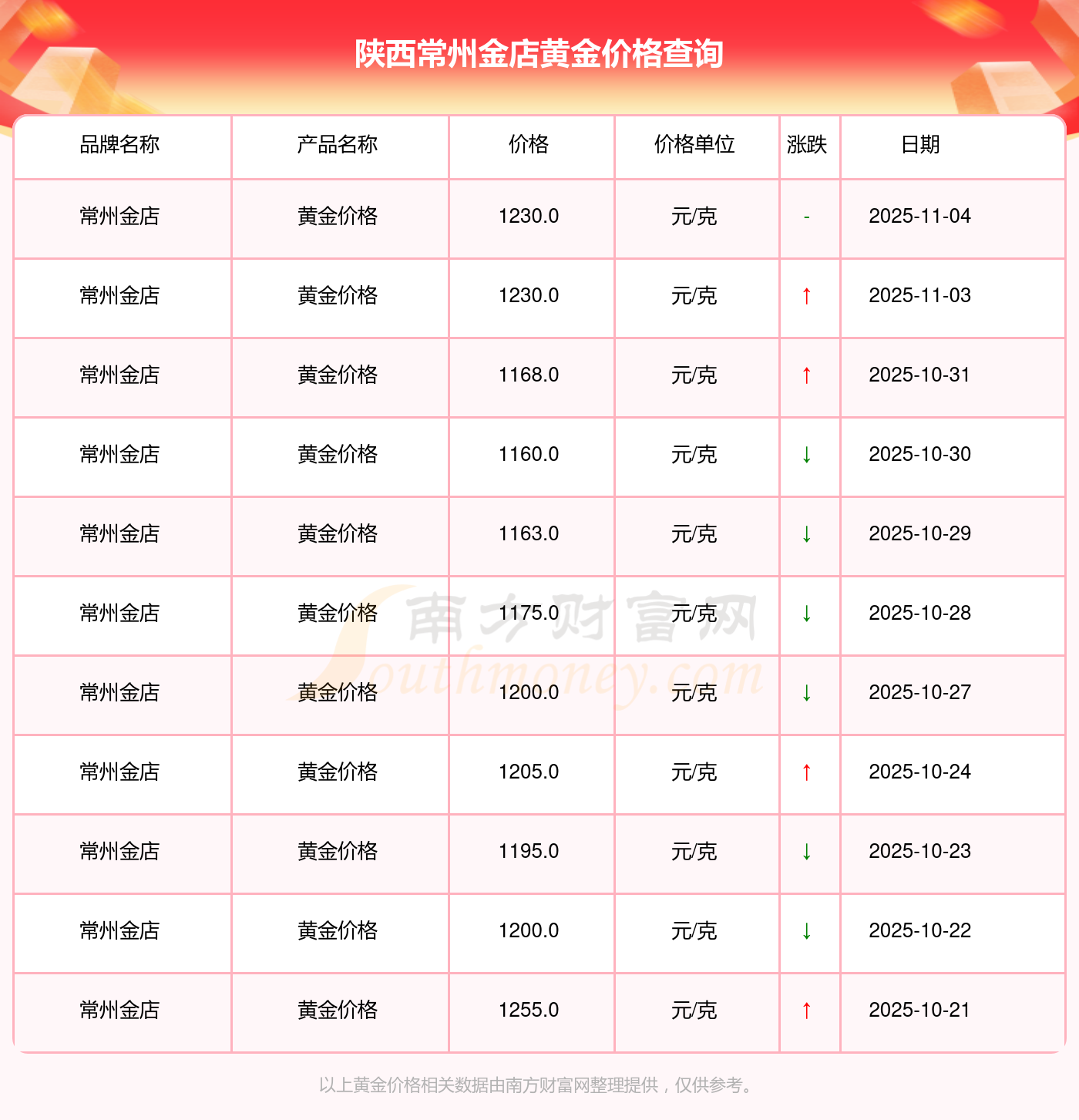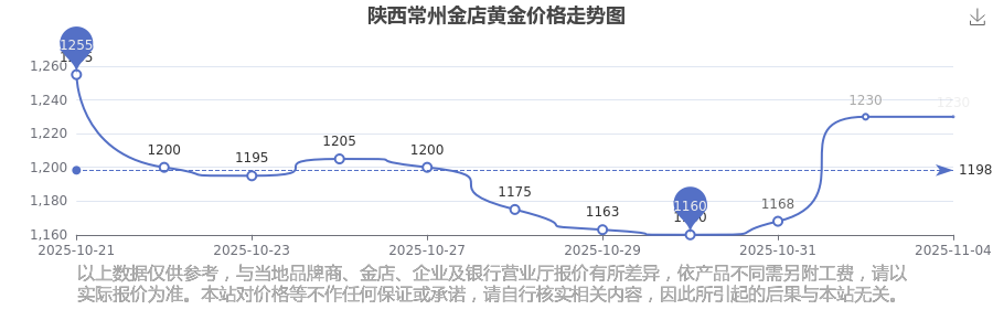 今天黄金每克能卖多少钱?今日陕西常州金店黄金价格查询,今日(2025年11月4日),陕西常州金店黄金价格:1230.0元/克。