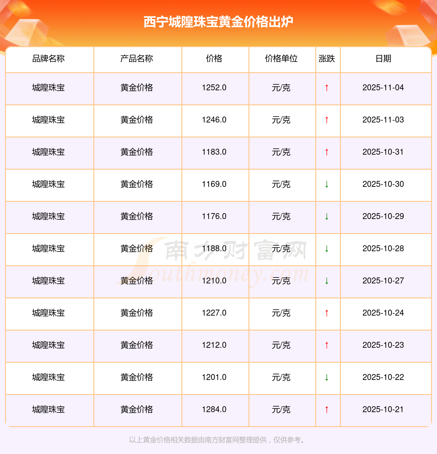 2025年11月4日各大金店黄金价格最新价格:周大福1265.0元/克,周大福633.0元/克,周大福1265.0元/克,周大福44220.0,周大福18130.0,周大福39890.0,周大福1168.0元/克,老凤祥1262.0元/克,老凤祥560.0元/克,老凤祥1262.0元/克,周六福1209.0元/克。