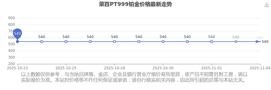 今日(2025年11月4日)菜百PT999铂金价格:540.0元/克。