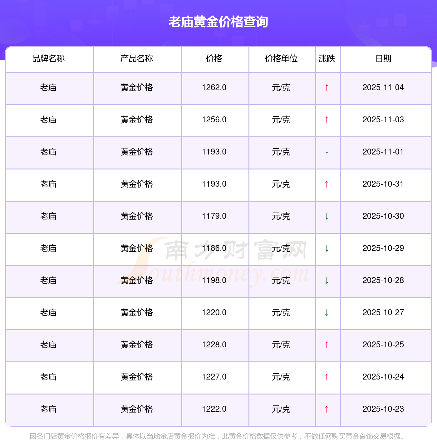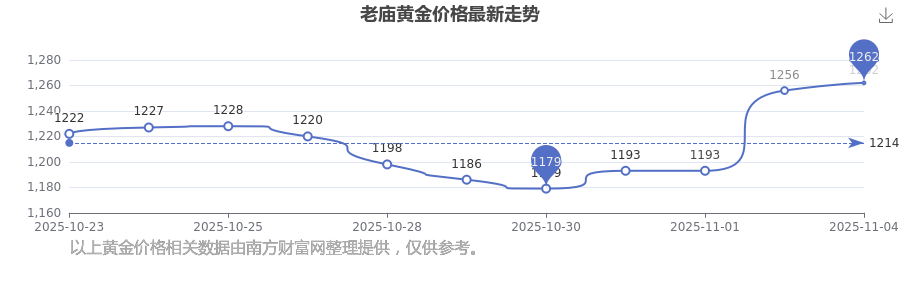 想了解此刻黄金价格,今天黄金一克的售价为多少?作为优良的导电导热材料,黄金具备良好的导热特性。因为化学稳定性高、抗氧化性强,能制作高精度电子元件,所以在电子工业的特殊电路设计中经常使用它。今日老庙黄金价格为1262.0元/克。