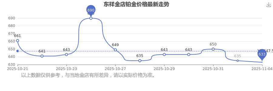 今日东祥金店 铂金价格,最新确定为633.0元/克。