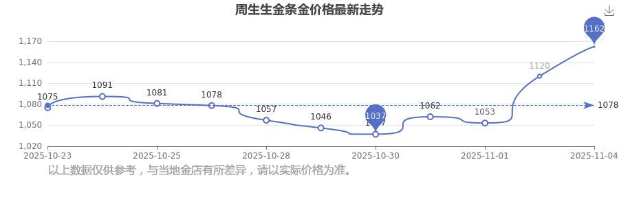 今日周生生所公布的 金条金价最新价格为1162.0元/克。