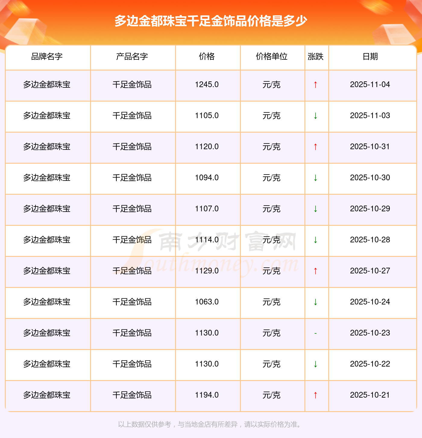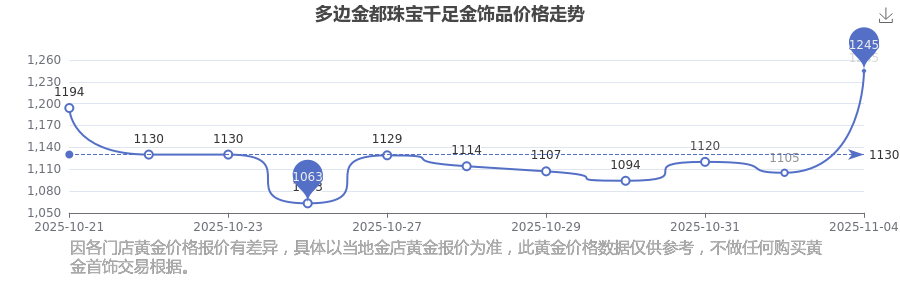 1245.0元/克是多边金都珠宝在今日给出的 千足金饰品最新价格。
