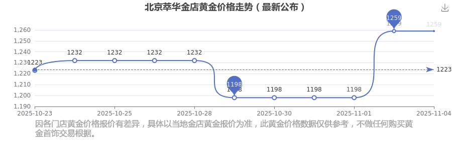 今日(2025年11月4日),北京萃华金店黄金价格的价格是1259.0元/克。