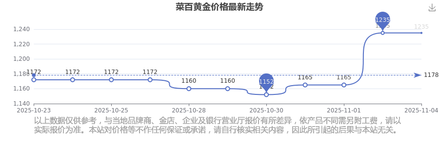 想查询当下黄金价格,今日黄金一克的价格是多少呢?作为优良的导电导热材料,黄金有良好的导热特性。电子工业中的特殊电路设计经常用到它,由于它化学稳定性高、抗氧化性强,能制作高精度电子元件。2025年11月4日菜百黄金价格是1235.0元/克。