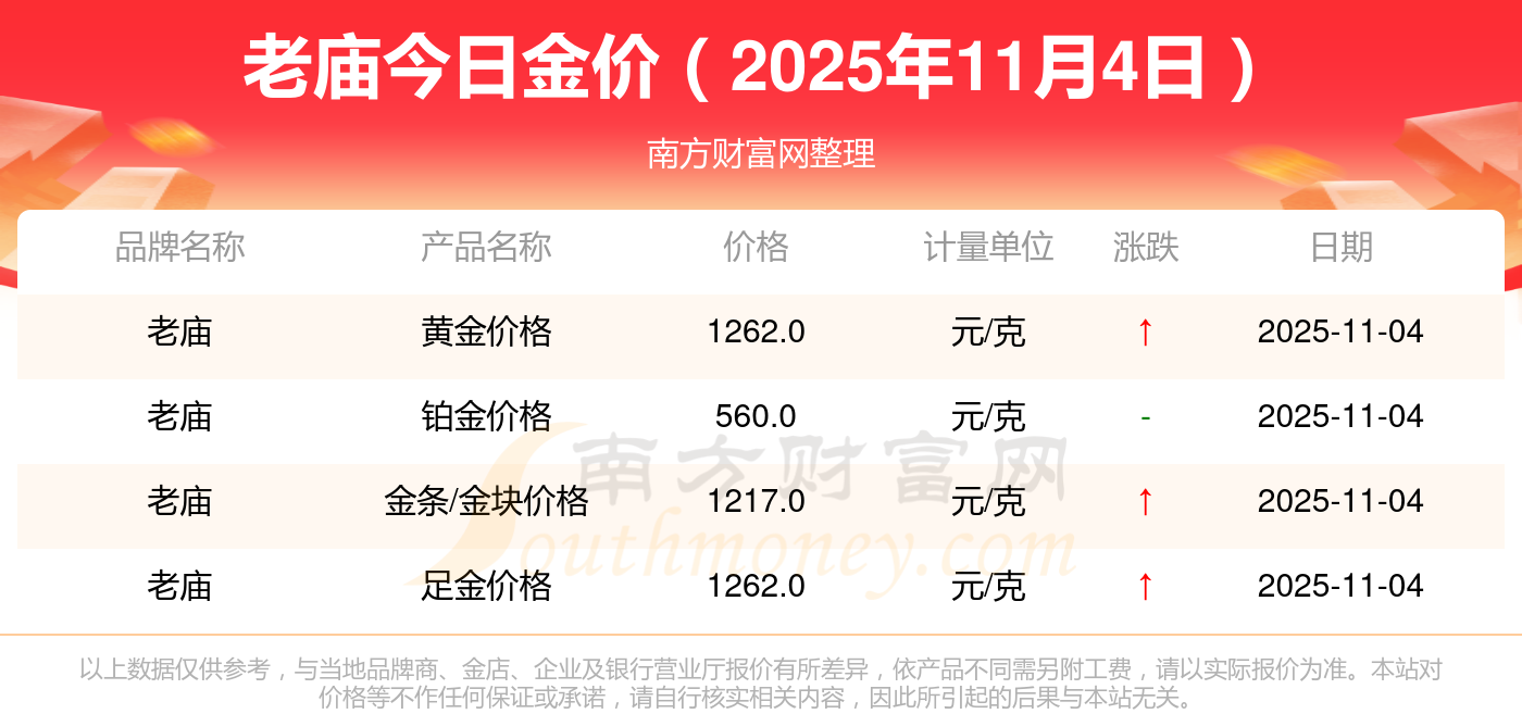 老庙今日金价的具体数字是怎样的?数据来了:黄金价格1265.0元/克,铂金价格633.0元/克,饰品金价(内地)1265.0元/克,黄金饰品(香港)44220.0,铂金价格(香港)18130.0,金条价格(香港)39890.0,金条金价(内地)1168.0元/克,黄金价格1262.0元/克,铂金价格560.0元/克,足金价格1262.0元/克,黄金价格1209.0元/克。