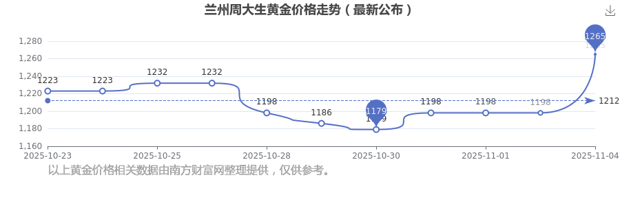 2025年11月4日,今日兰州周大生黄金价格:1265.0元/克。