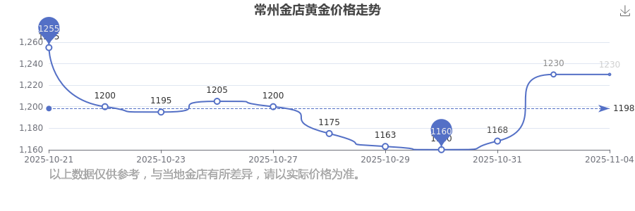 想查询当下黄金价格,今日黄金一克的价格是多少呢?黄金是优良的导电导热材料,具备良好的导热特性。因其化学稳定性高、抗氧化性强,可用来制作高精度电子元件,所以在电子工业的特殊电路设计中经常被使用。今日常州金店黄金价格为1230.0元/克。