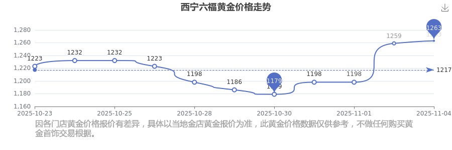 1263.0元/克的黄金价格,是西宁六福在 2025年11月4日给出的。