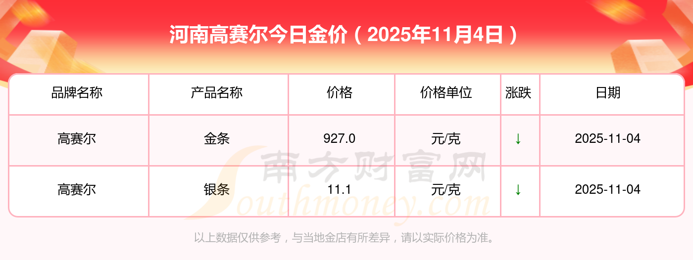 以上数据仅供参考,与当地金店有所差异,请以实际价格为准。