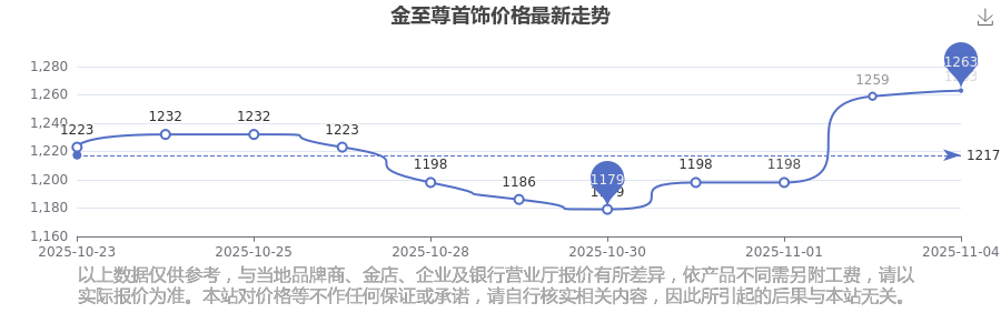 最新数据表明,金至尊今日 首饰价格为1263.0元/克。