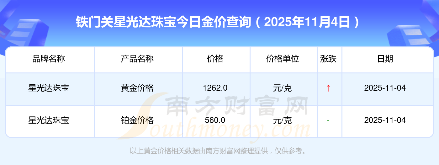 铁门关星光达珠宝当下黄金一克的价钱是多少?