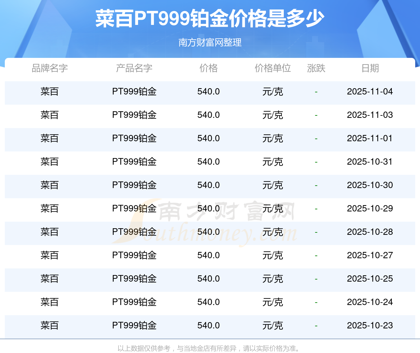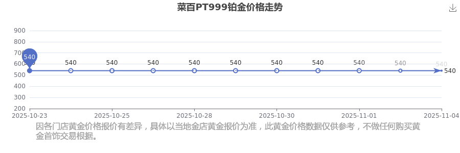 2025年11月4日菜百PT999铂金价格最新是540.0元/克。