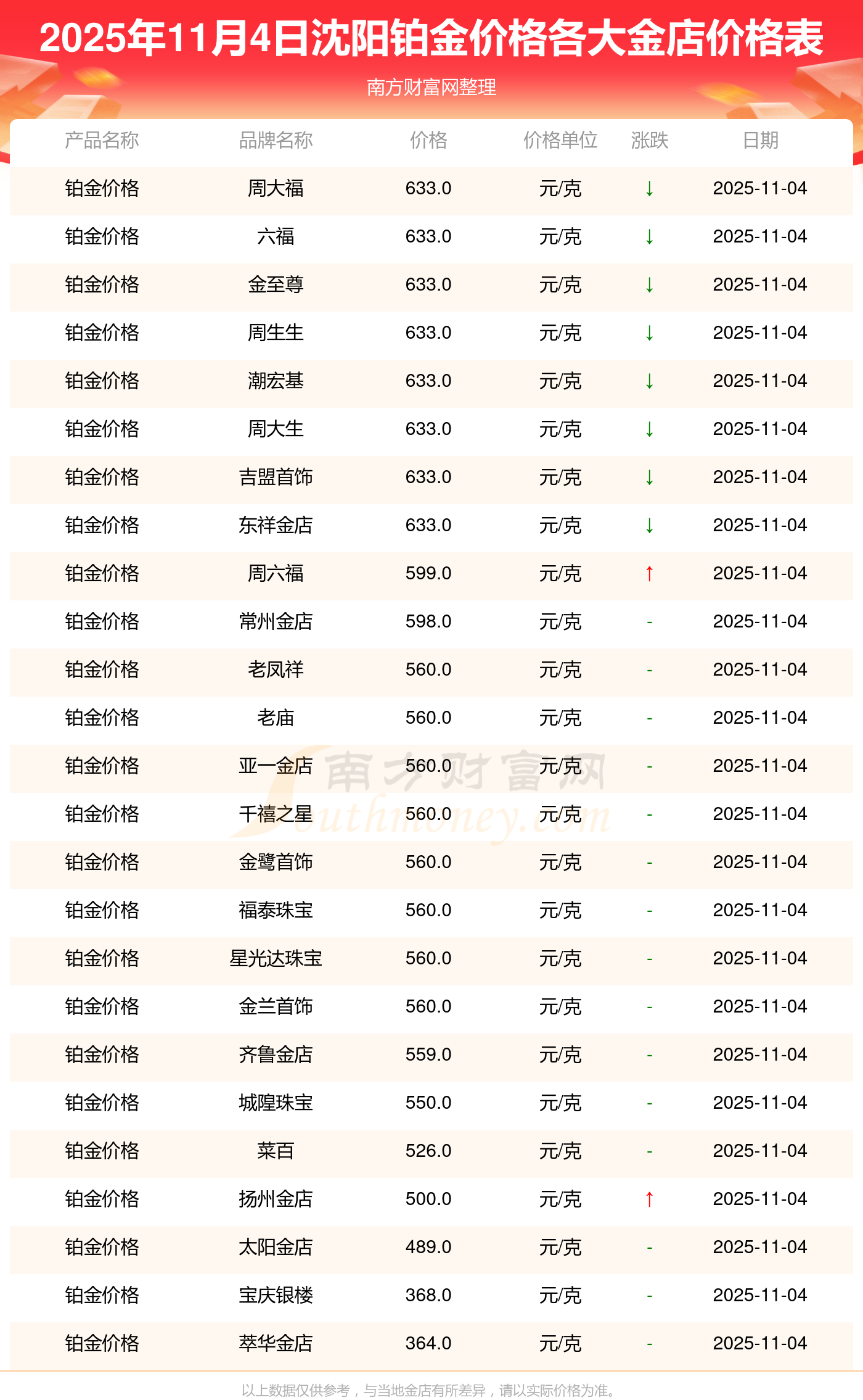 以上数据仅供参考,与当地金店有所差异,请以实际价格为准。