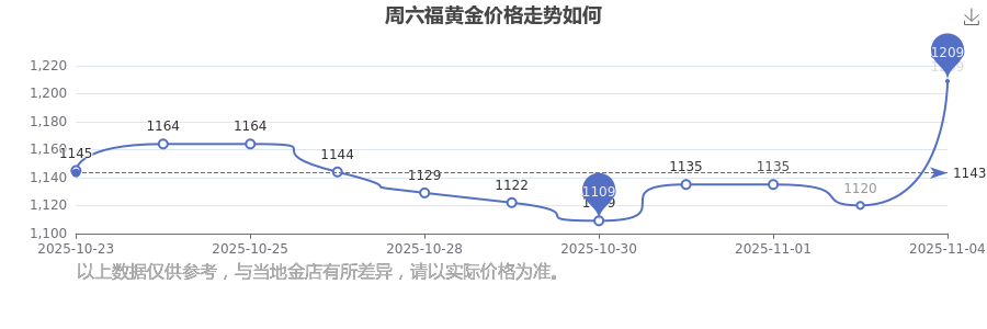 想查询当下黄金价格,今日黄金一克的价格是多少呢?黄金每一克的价格通常来说是多少?今日周六福黄金价格最新为1209.0元/克。
