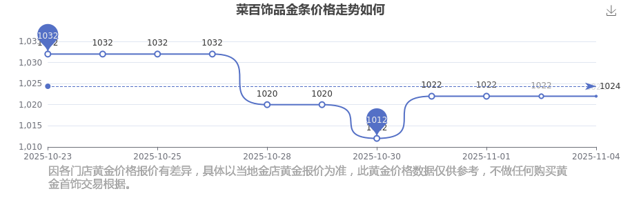 今日(2025年11月4日),菜百饰品金条价格最新价格为1022.0元/克。