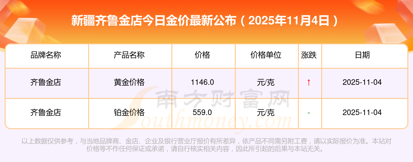 2025年11月4日齐鲁金店金条多少钱1克 现在新疆齐鲁金店黄金价格查询