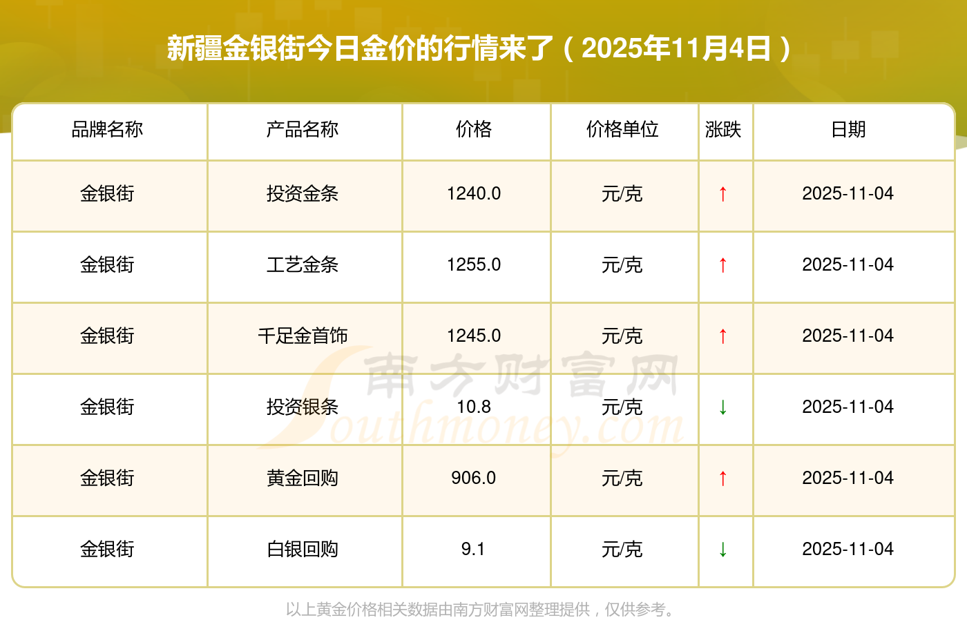 2025年11月4日金银街金条金价查询_今日新疆金银街金价表一览