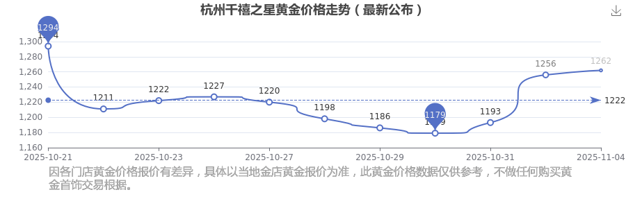2025年11月4日,杭州千禧之星的黄金价格标价达到 1262.0元/克。
