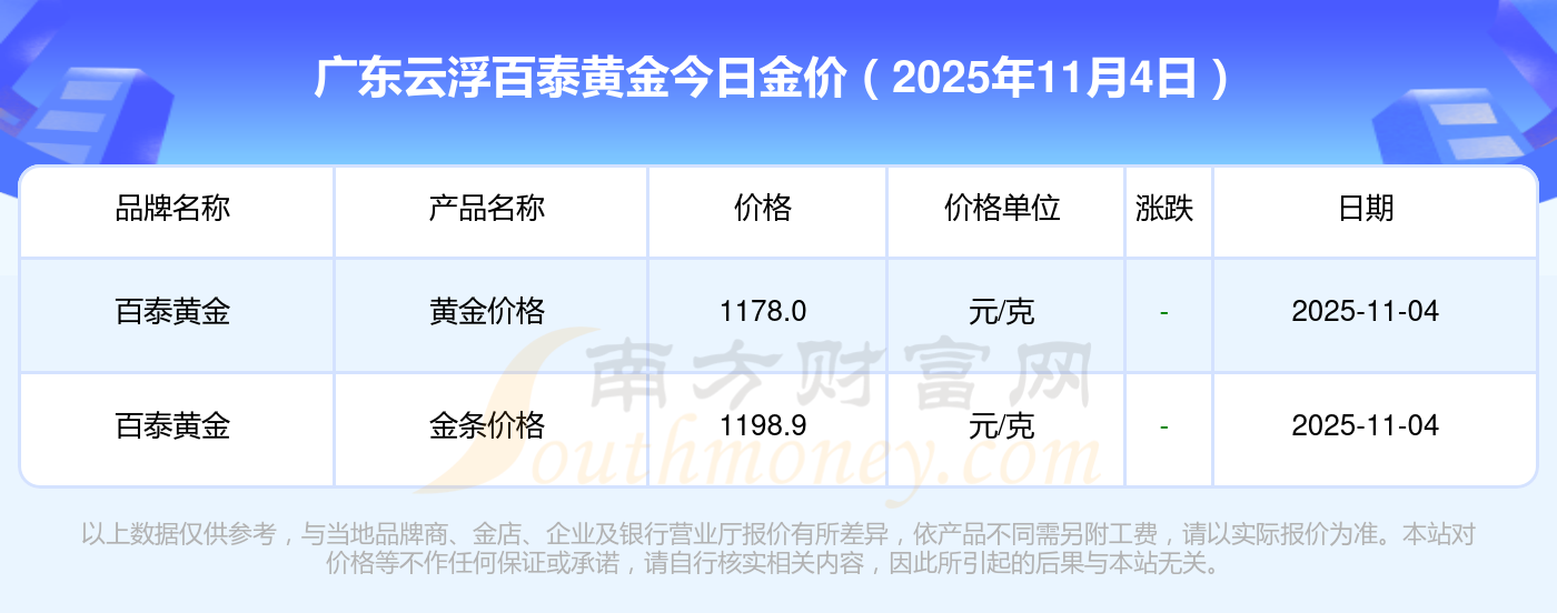 广东云浮百泰黄金金价今日价格最新_广东云浮百泰黄金黄金多少钱一克2025年11月4日,随小编来了解一下详情。
