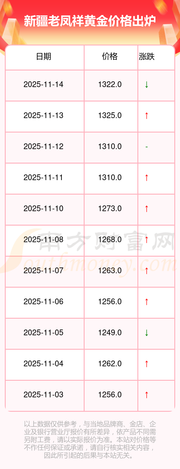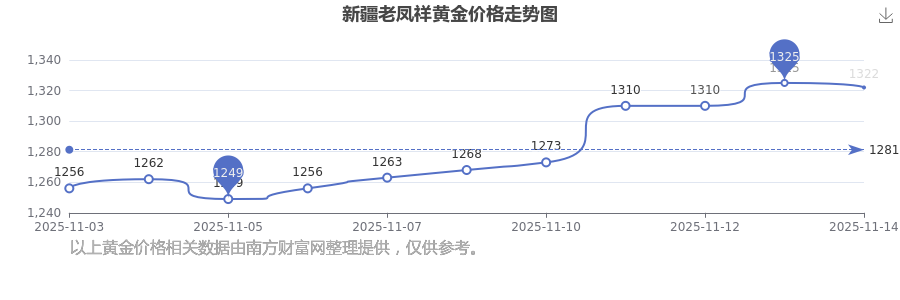 2025年11月14日,新疆老凤祥所售黄金价格,其价格设定为 1322.0元/克。