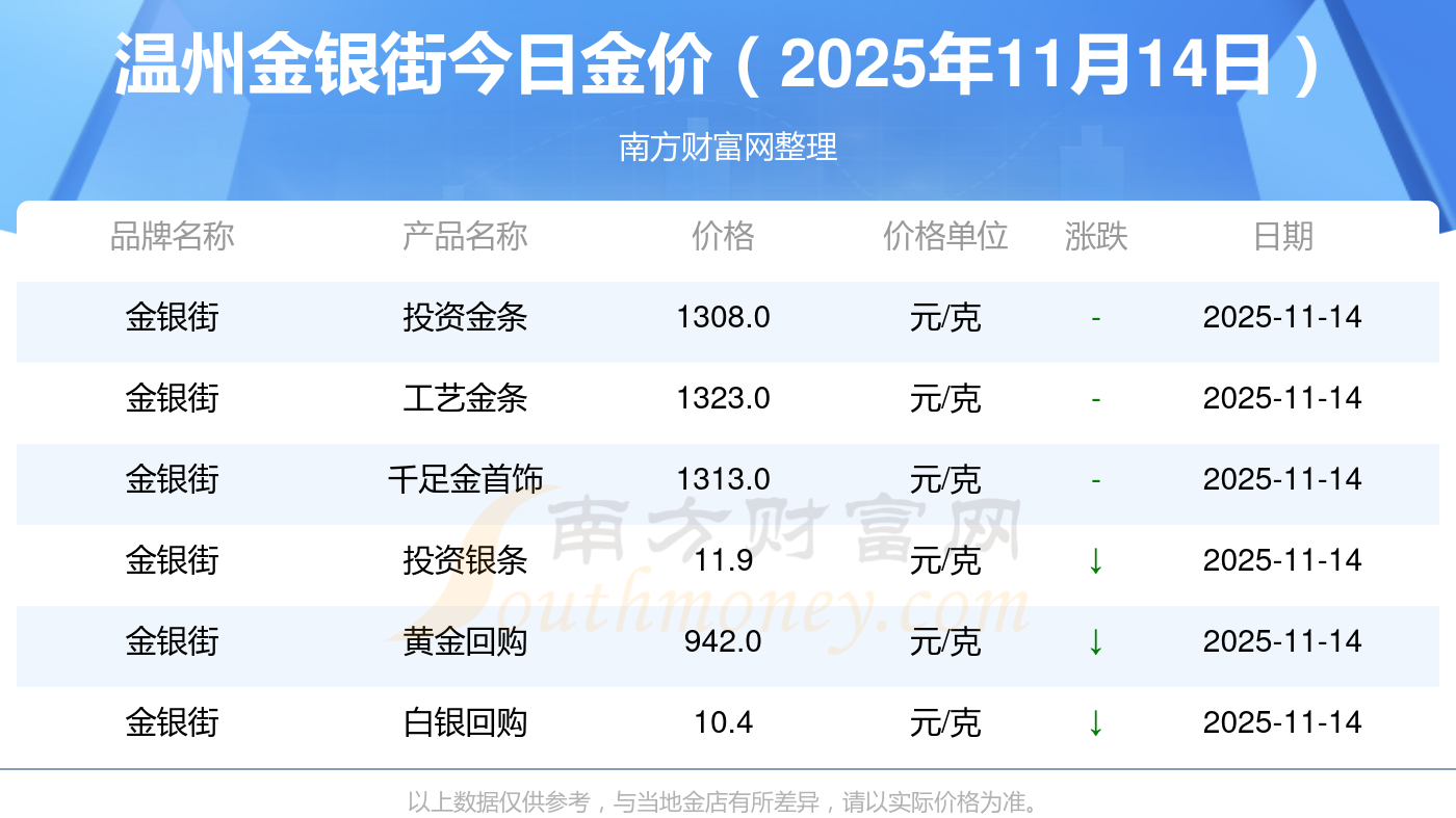 温州金银街金价今日价格最新_温州金银街黄金多少钱一克2025年11月14日,随小编来了解一下详情。