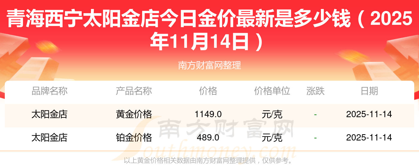 2025年11月14日太阳金店金条多少钱1克 现在青海西宁太阳金店黄金价格查询