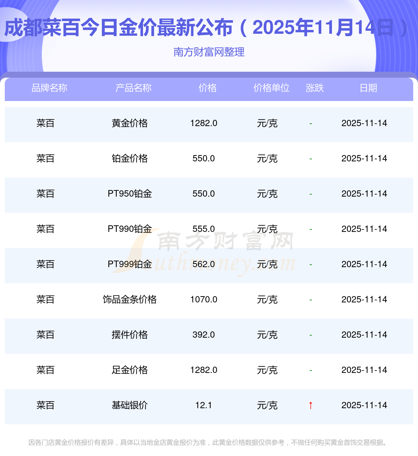 菜百黄金价格多少钱一克?今日成都菜百金价表一览