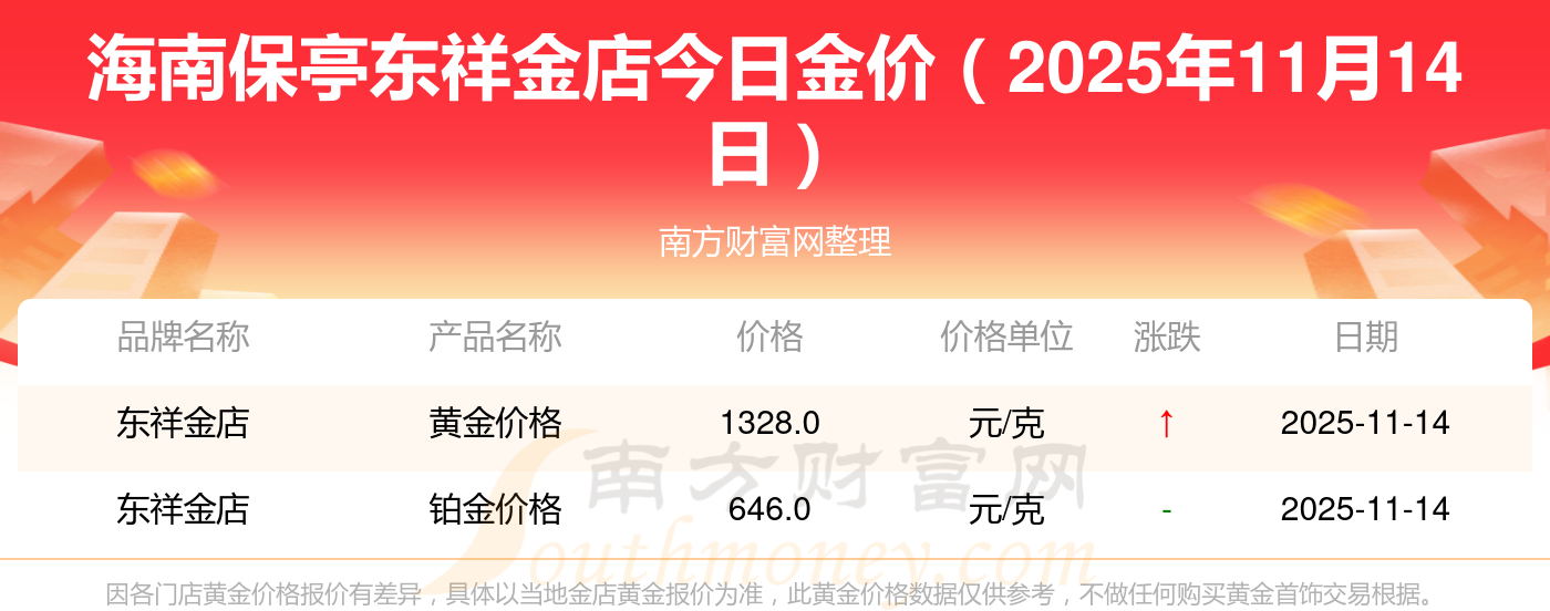 想查询今日黄金价格,当下黄金一克具体售价几何?海南保亭东祥金店今日金价查询