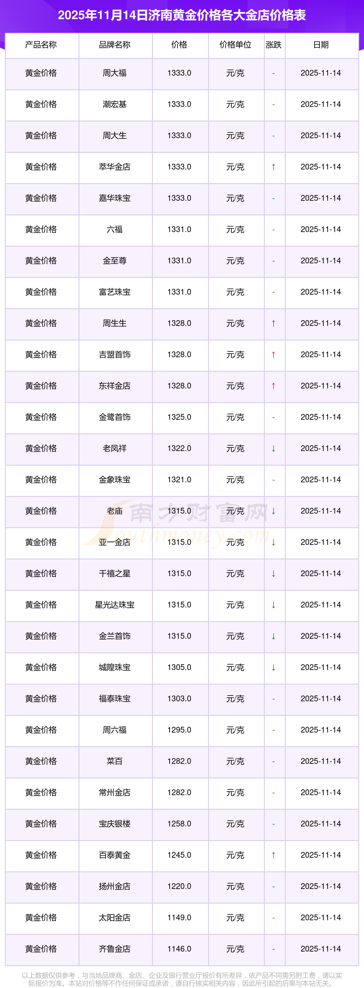 以上数据仅供参考,与当地金店有所差异,请以实际价格为准。
