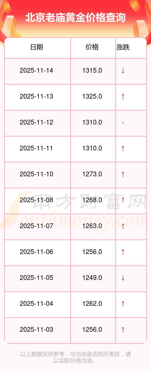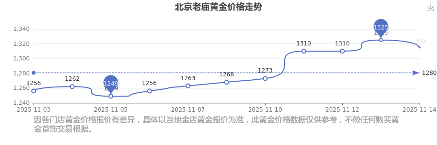 2025年11月15日,今日北京老庙黄金价格:1315.0元/克。