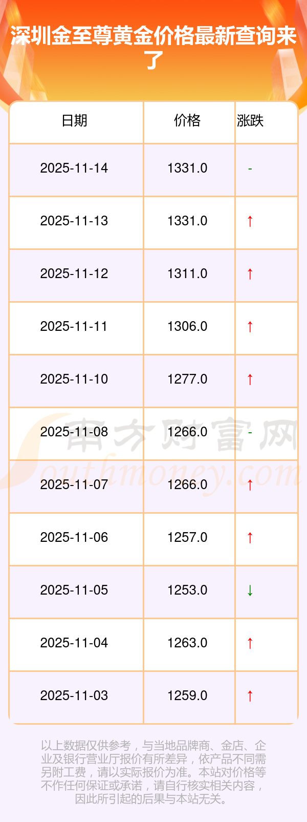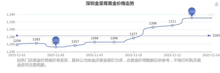 今日深圳金至尊黄金价格最新为:1331.0元/克。