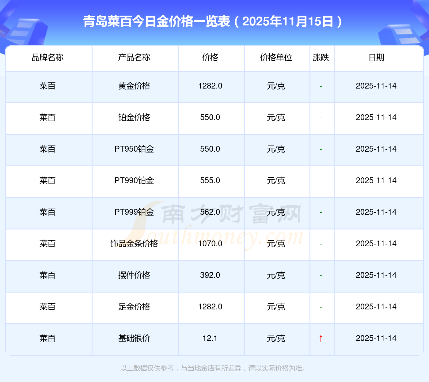 黄金价格1333.0元/克,铂金价格646.0元/克,饰品金价(内地)1333.0元/克,黄金饰品(香港)46320.0,铂金价格(香港)18410.0,金条价格(香港)41780.0,金条金价(内地)1167.0元/克,黄金价格1322.0元/克,铂金价格600.0元/克,足金价格1322.0元/克,黄金价格1295.0元/克。