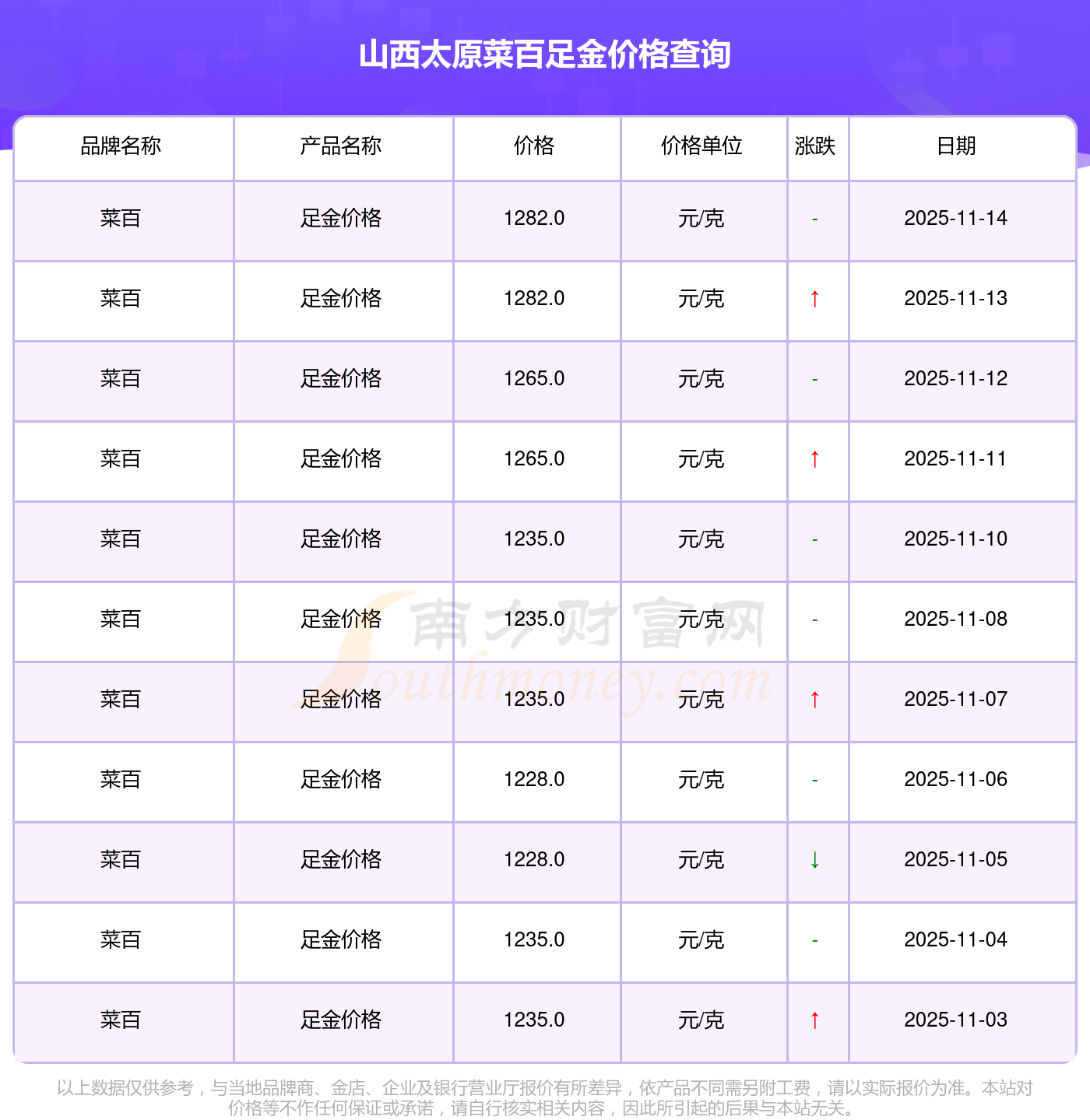 以上数据仅供参考,与当地金店有所差异,请以实际价格为准。