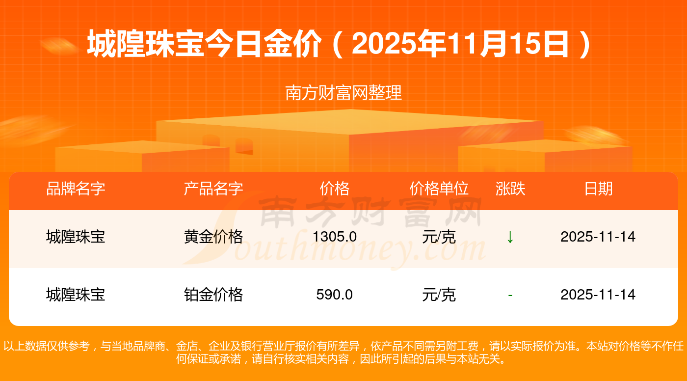 2025年11月15日城隍珠宝金条多少钱1克 现在新疆城隍珠宝黄金价格查询