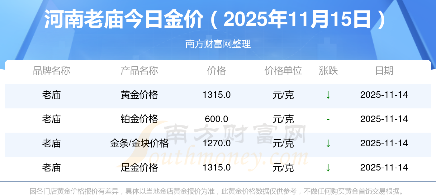 河南老庙每克黄金的价格是多少?