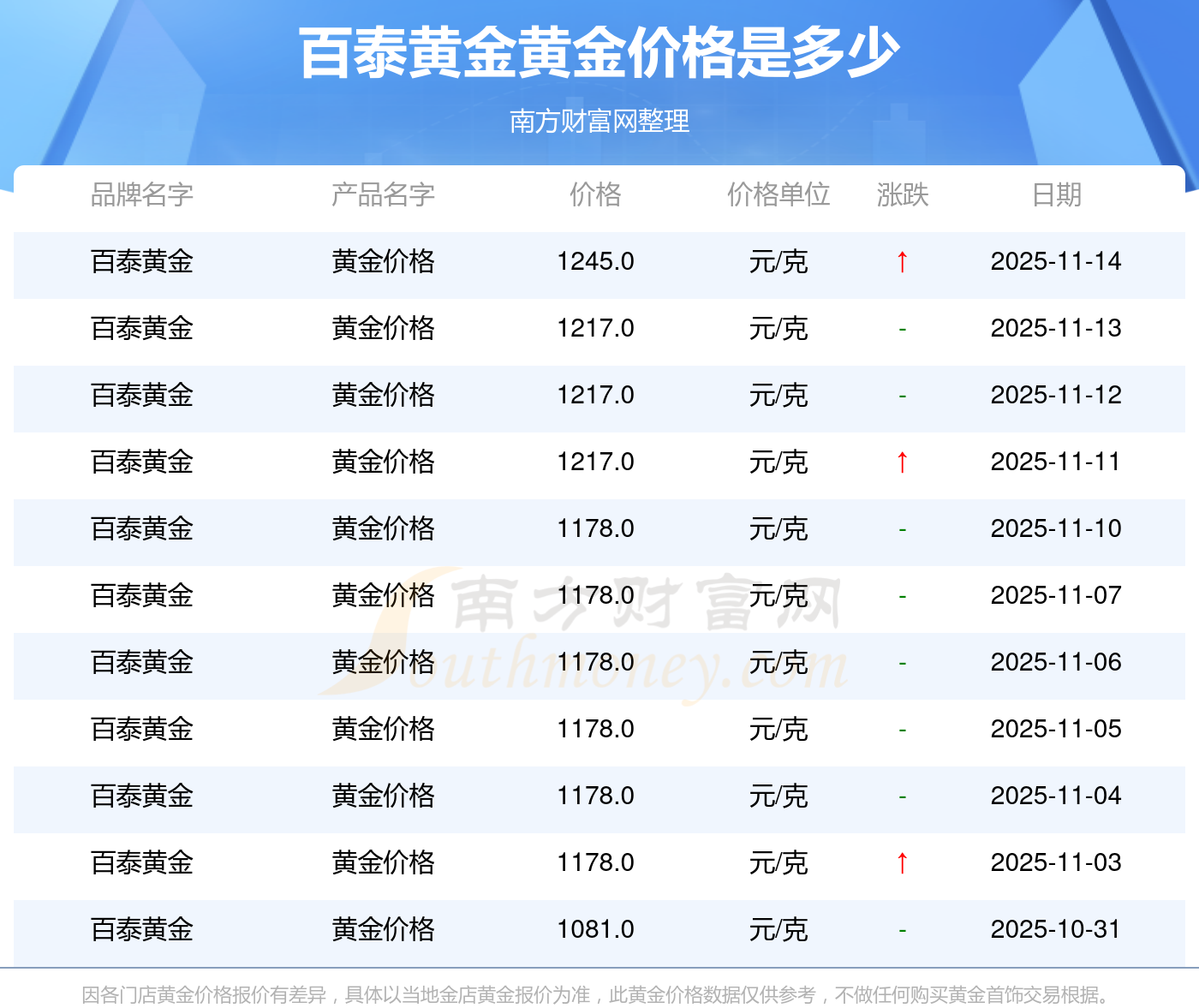 2025年11月15日百泰黄金目前黄金价格多少钱一克?今天黄金价格查询,一起来看看吧!