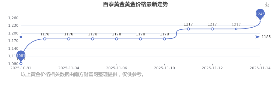 今日(2025年11月15日)百泰黄金黄金价格是1245.0元/克。