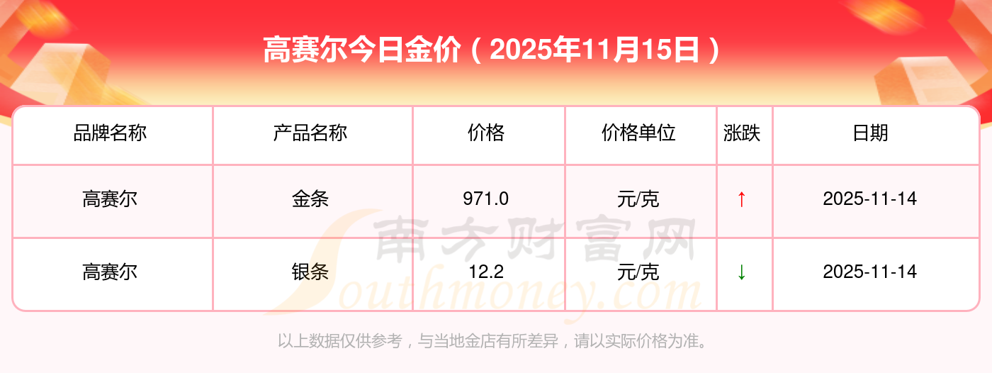 高赛尔金价在今日的具体价位是多少?