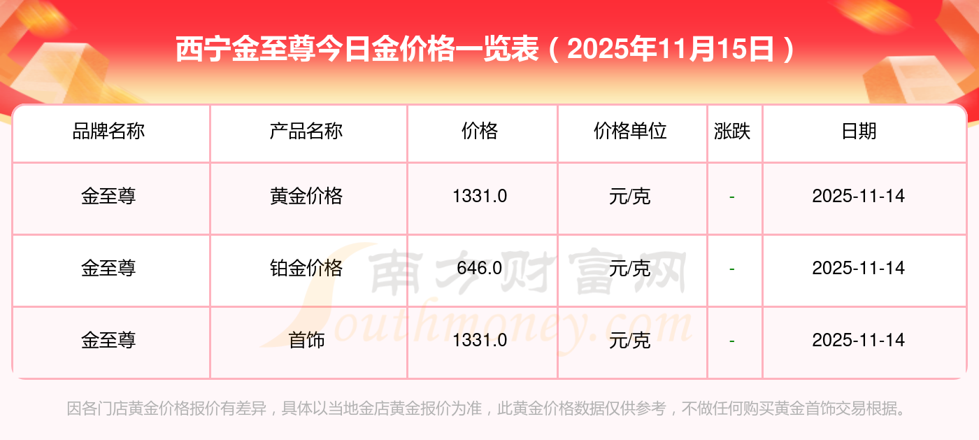 2025年11月15日2025今日金价查询表_今日西宁金至尊金价表一览