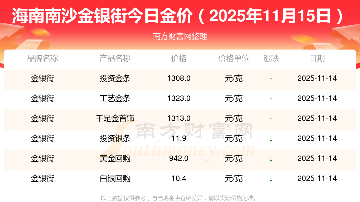 以上数据仅供参考,与当地金店有所差异,请以实际价格为准。