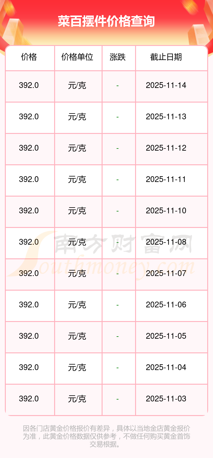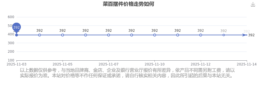 今日(2025年11月15日),菜百摆件价格:392.0元/克。