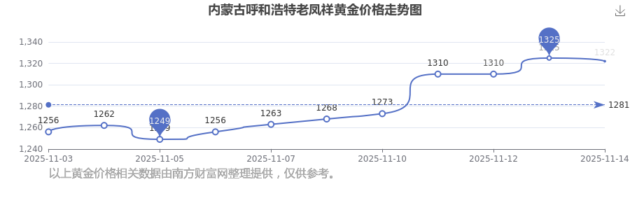 1322.0元/克,此乃内蒙古呼和浩特老凤祥于 2025年11月15日黄金价格的挂牌价格。